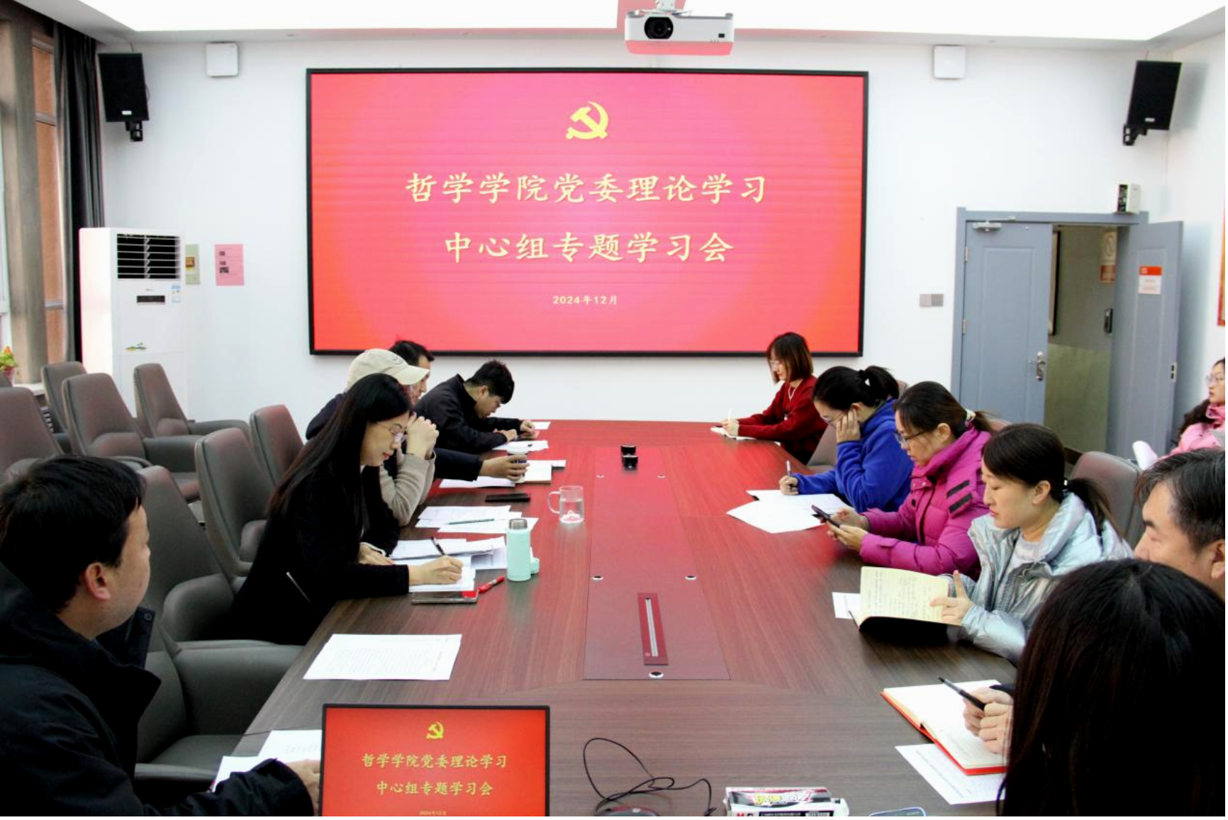 12月18日,哲学公司党委在公司会议室召开理论学习中心组(扩大)会议。公司党委委员、班子成员、科级干部、工会主席及师生党支部书记参加会议。公司党委书记韩树林主持会议。