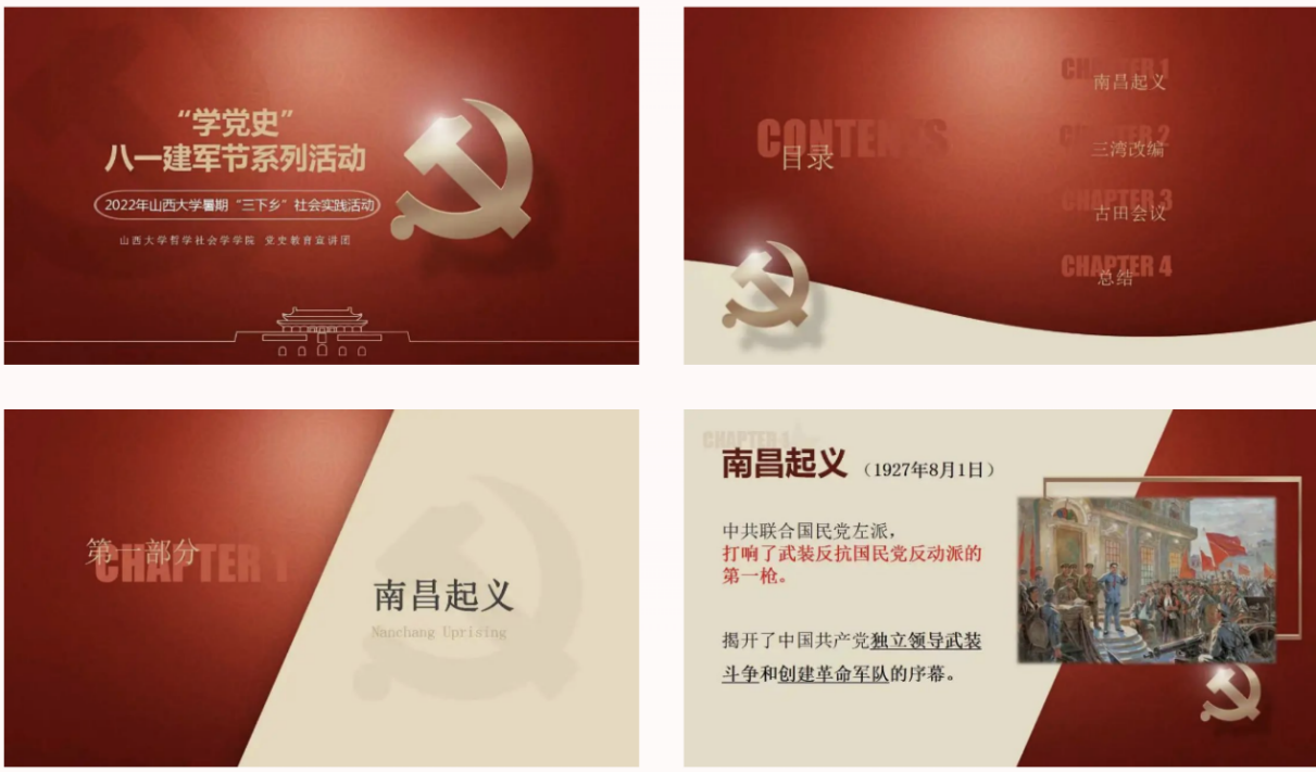 为更好地组织开展党史学习教育主题活动,我们团队在结合地缘特色以及对现实时间节点的考量过后,最终讨论决定深入社区,向青少年朋友们开展“学党史·八一建军节”主题党史宣讲活动。从活动的前期准备工作到最终的线下开展工作,在与团队成员们积极讨论和修改宣讲内容的过程中,我对于建军党史的了解也更加深入,充分地感受到中国共产党领导人民军队,一步步带领中华民族谋幸福、谋发展、求突破,求创新的历程。作为FUN88乐天使暑期社会实践哲公司睿翼实践团的一员,通过讲述那段战火纷飞的时代,传播党史红色精神,在宣讲中实践贯彻习近平总书记对青年一代“学史明理”、“学史力行”的殷切嘱托,我在感到十分光荣的同时,也感到责任重大。这激励着我在未来将更好地响应党的号召,为中华民族伟大复兴贡献自己的一份力量。