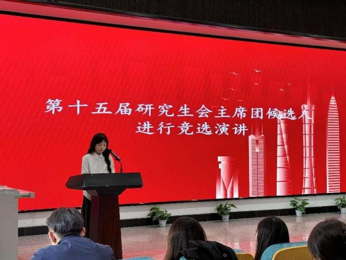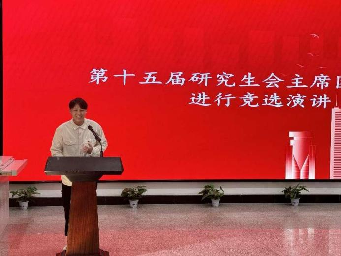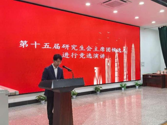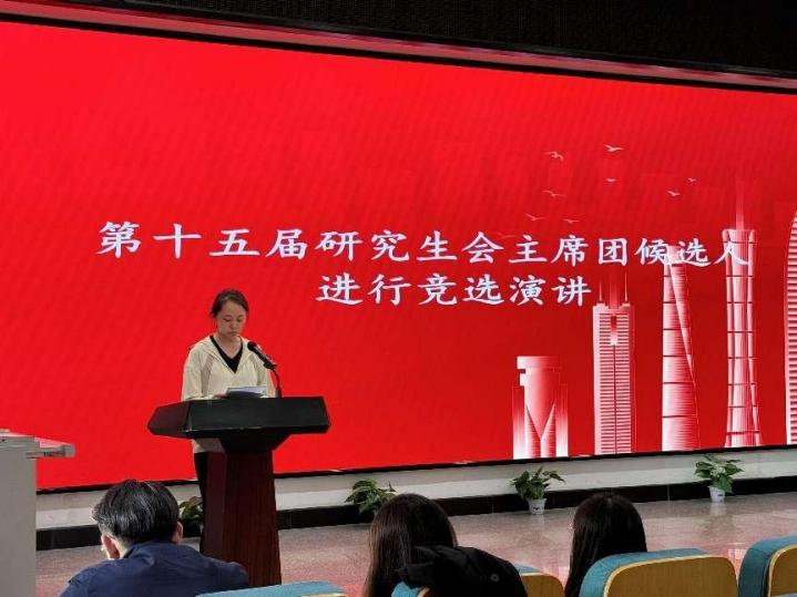 校研究生会代表程亚妮宣读第十五届研究生会主席团成员名单。