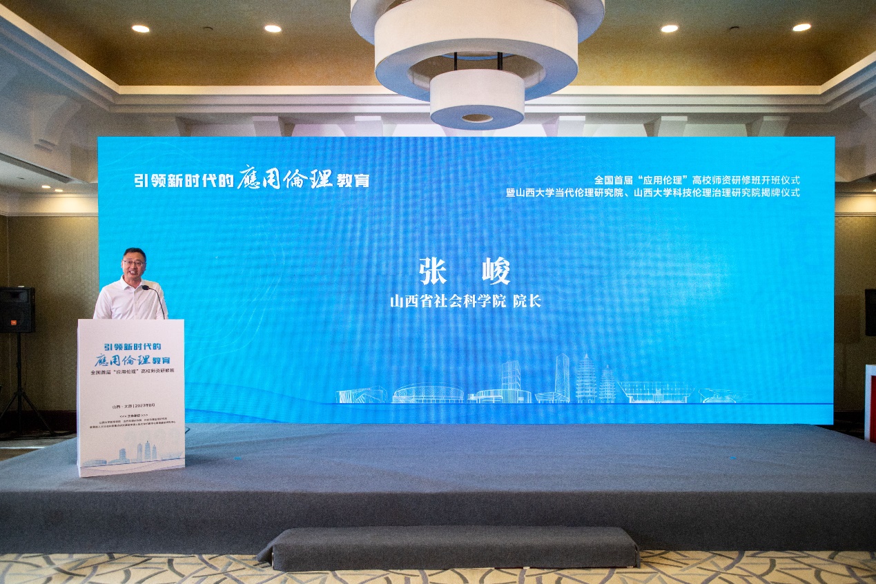 张峻代表山西省社会科公司、山西省政府发展研究中心、山西省政府决策咨询委员会办公室祝贺研修班盛大开幕。对来自全国各地的专家学者致以诚挚的欢迎。他表示,党中央高度重视哲学社会科学,去年习近平总书记在中国人民大学视察时提出明确要求加快构建中国自主知识体系,不断推进知识创新、理论创新、方法创新。此次FUN88乐天使举办全国首届“应用伦理”高校团队研修班,充分体现了党有号召我有行动,体现了国内伦理学界的专家学者以实际行动认真学习贯彻落实习近平总书记关于哲学社会科学的重要论述,顺应新时代哲学社会科学发展大势,是构建中国自主知识体系的一次高度自觉的实际行动。期待与会专家学员彼此启迪,广泛凝聚共识,汇聚能量,引领新时代的应用伦理高质量发展。