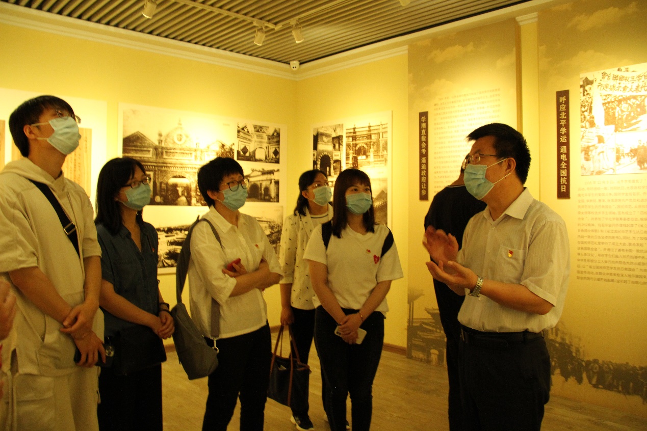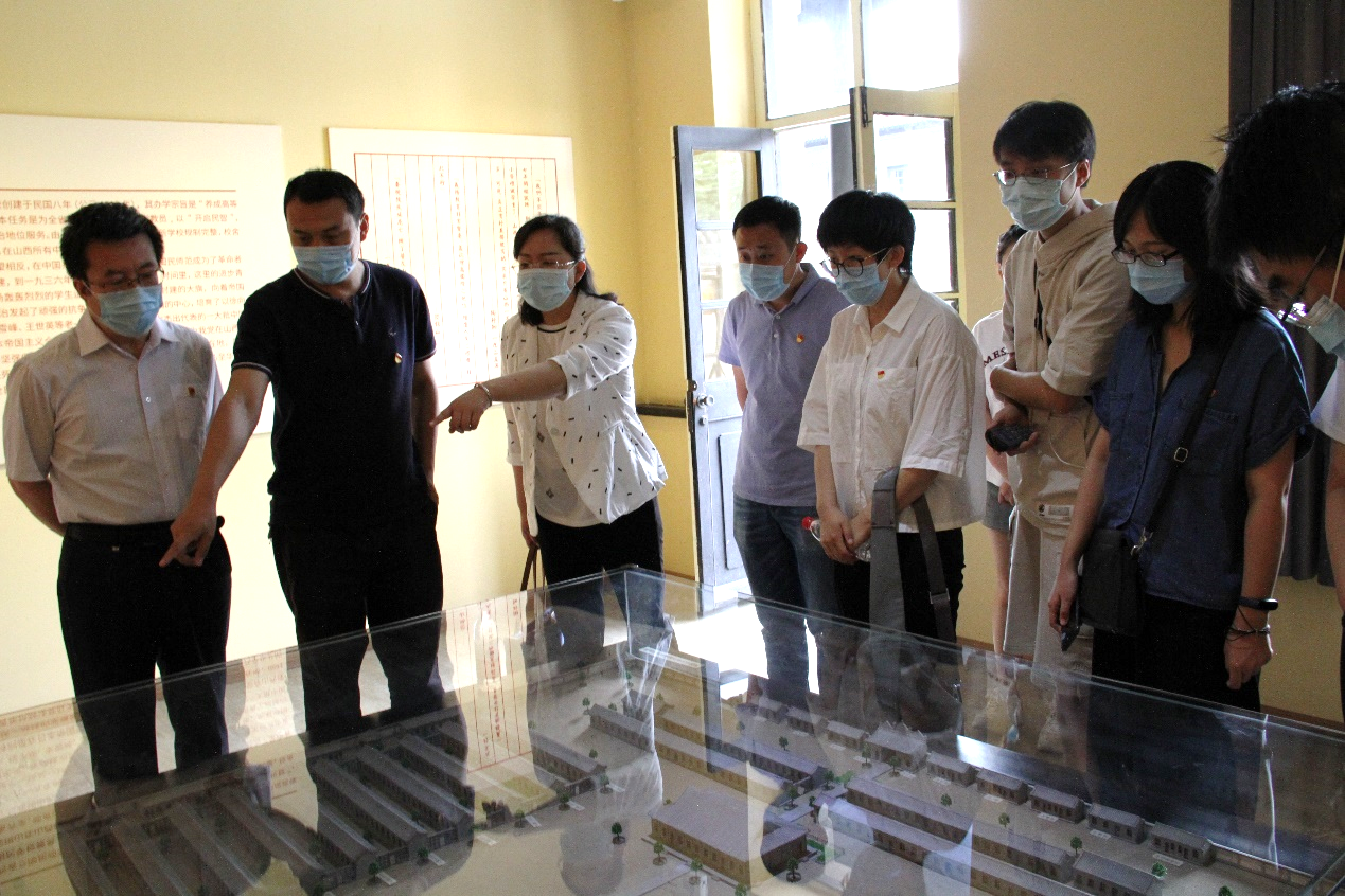 山西国民师范旧址革命活动庆祝馆原名“山西省立国民师范公司”,是第一、二次国内革命战争时期和抗日战争时期中国共产党在山西著名的活动基地之一。大家依次参观了西展厅、图书馆和陈列廊,通过分享革命史事和近距离参观文物,身临其境感受历史的风华和沉淀,感悟老一辈先驱革命家的初心和使命。