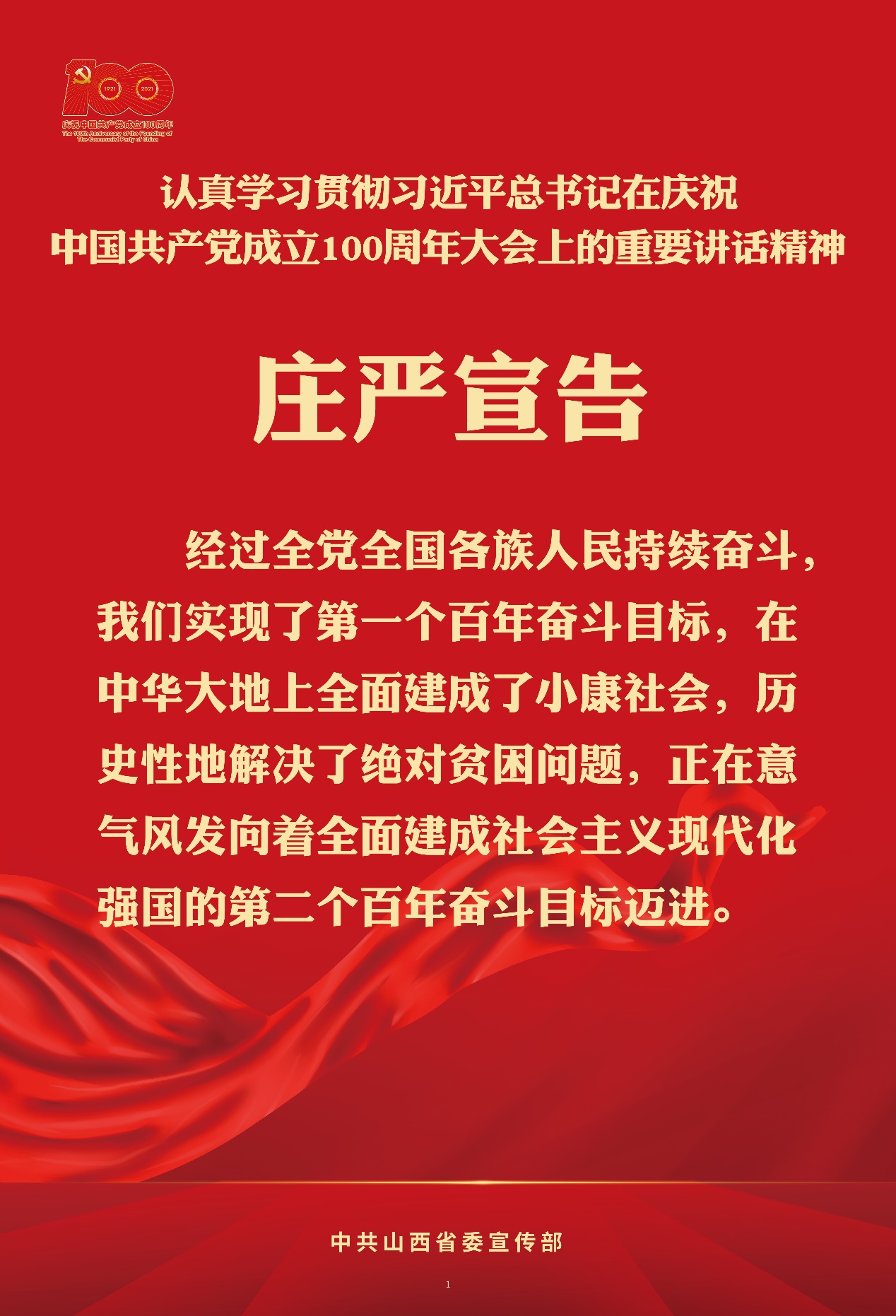 认真学习贯彻习近平总书记在庆祝中国共产党成立100周年大会上的重要讲话精神