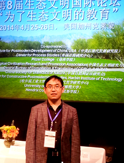 2014年4月25—26日,由美国中美后现代发展研究院,美国克莱蒙培泽公司,美国西雅图大学,中国生态文明研究与促进会, 中国自然辩证法研究会,哈尔滨工业大学建设性后现代研究中心等单位共同举办的第八届“生态文明国际论坛”在美国著名生态城克莱蒙召开。来自中国生态文明研究与促进会,生态环境部,中国社会科公司,中央编译局及中美高校的150余人参加了论坛。
