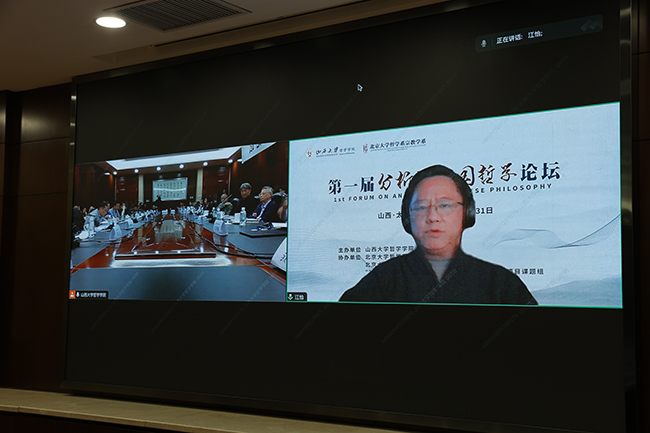 江怡教授发言的题目为“分析的中国哲学与中国分析哲学”。江怡教授指出,缺失严格的逻辑论证,只重感性、不重理性是对中国传统哲学的错误印象,实际上中国哲学智慧中包含了丰富的逻辑论证。基于对“分析”概念的不同理解,他强调,中国哲学不仅应当是“分析的”, 而且适用于“分析的”,因而“分析的中国哲学”应当是这种哲学形态的题中之义,中国分析哲学研究的基本形式就是对中国哲学问题的逻辑重构。